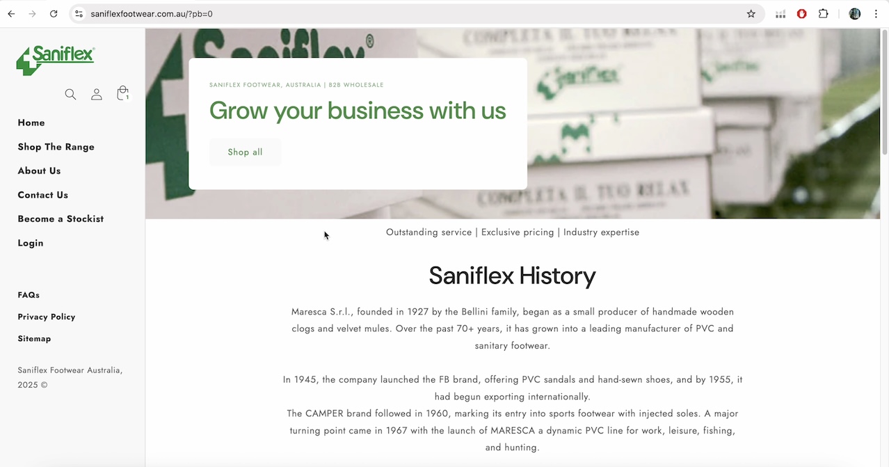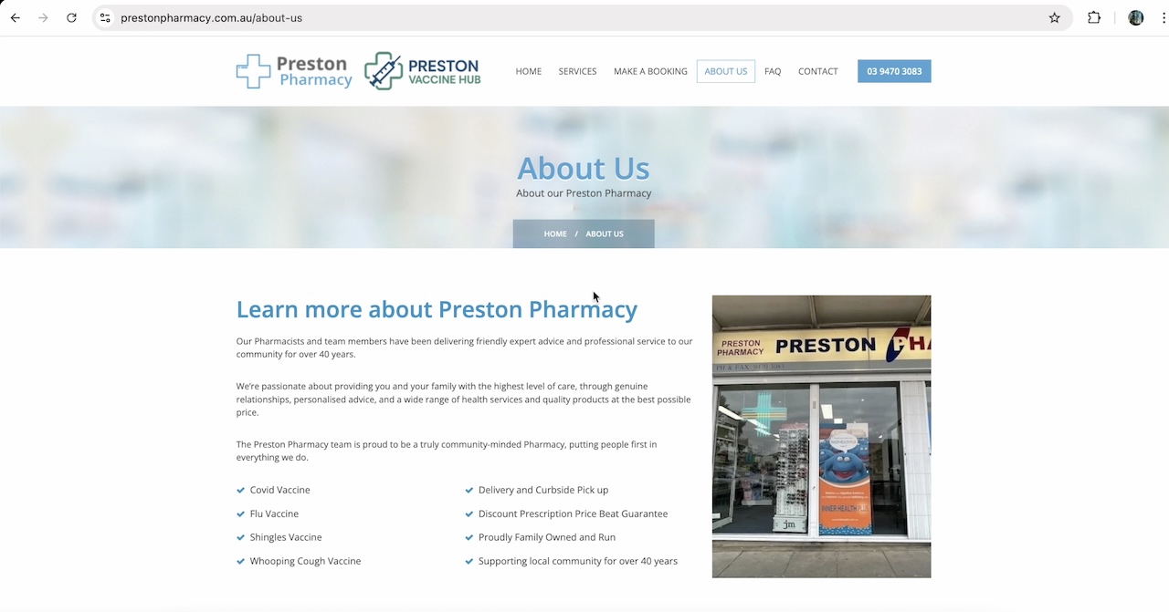 The site implements a wordpress install with banner home page, contact, about, services as well as a blog and store (currently not used)